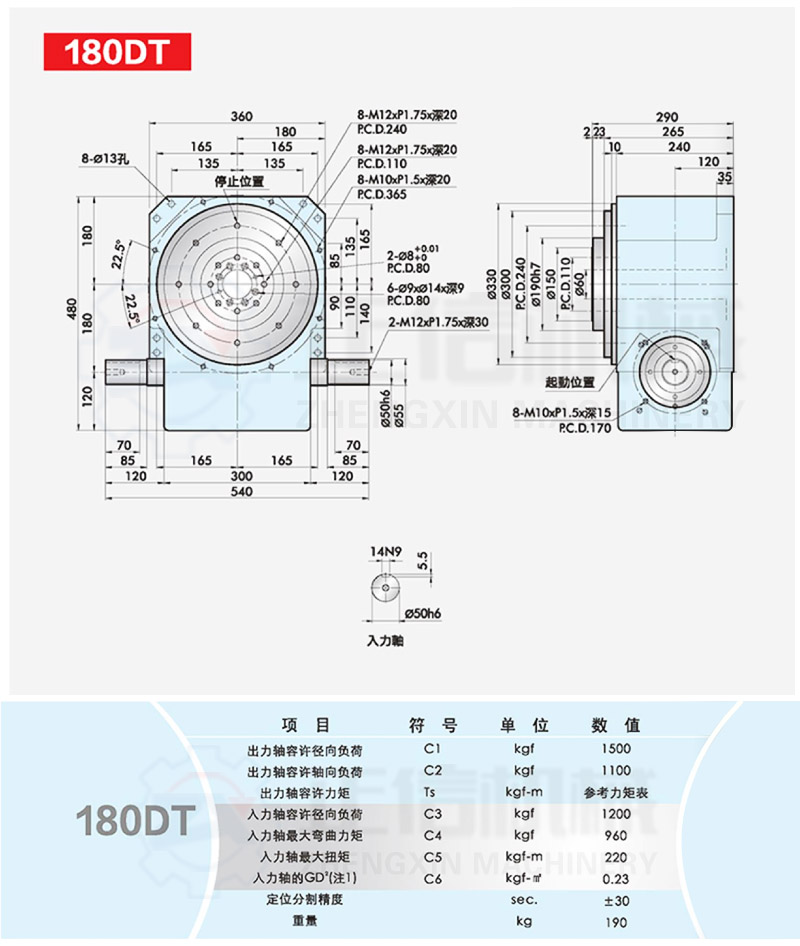 出力軸上的旋轉(zhuǎn)臺可用作自動旋轉(zhuǎn)機器的中心傳動力。