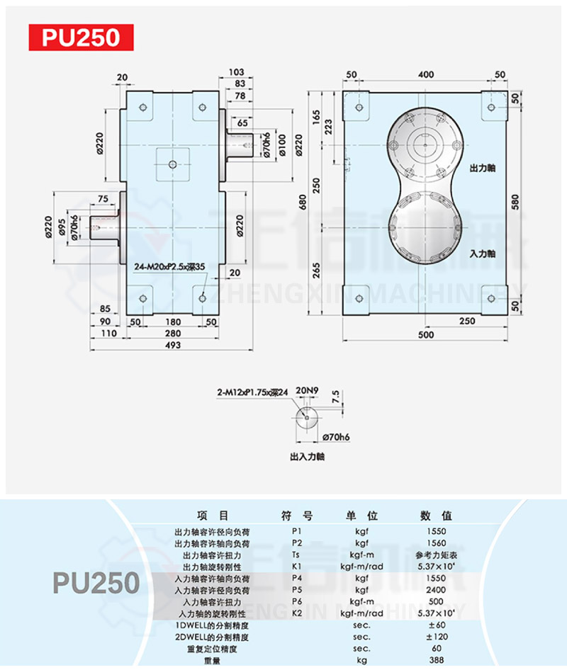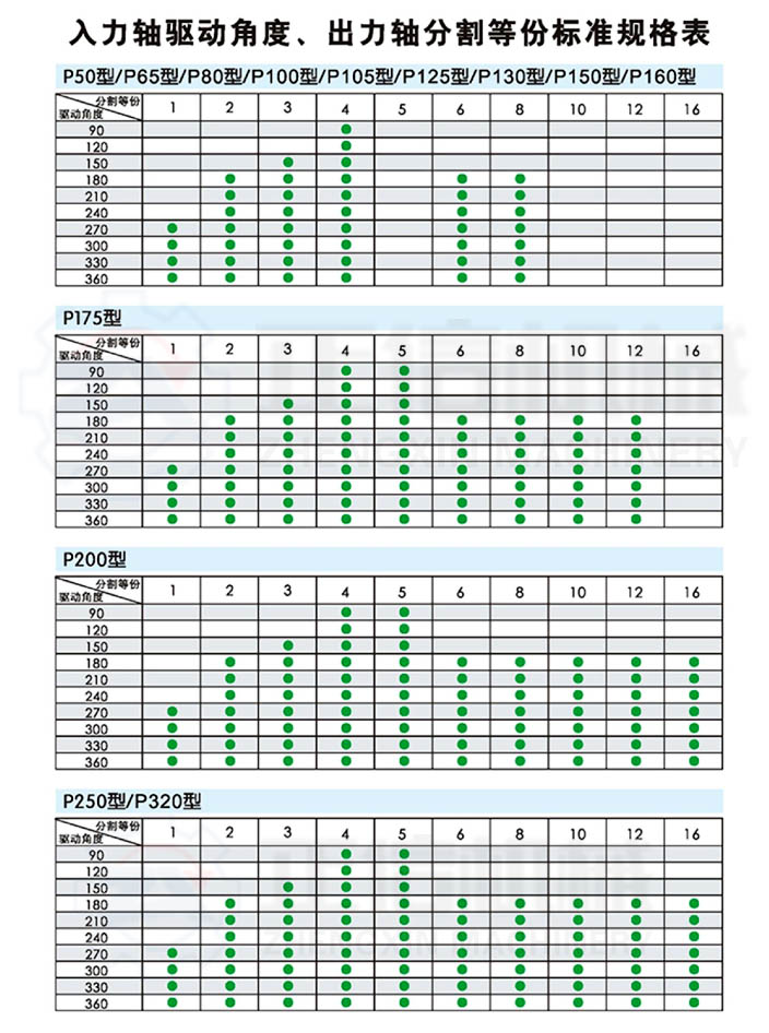 此機(jī)種是內(nèi)含二片固定在輸入軸上的版型凸輪驅(qū)動輸出軸上的分度盤以完成分度,此分割器有平行共軛凸輪的機(jī)構(gòu)設(shè)計,最合適供給節(jié)距較大的輸送帶傳動或用于停留時間較長的間歇分度。另外三片式重負(fù)荷型式,更適合一些快速且長節(jié)距的輸送,并且停留時間亦比二片式長。