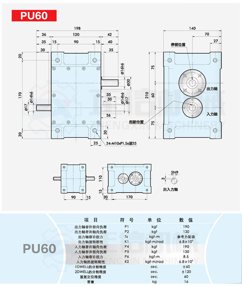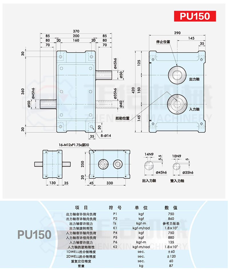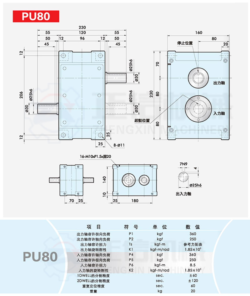 出力軸上的旋轉(zhuǎn)臺可用作自動旋轉(zhuǎn)機(jī)器的中心傳動力。