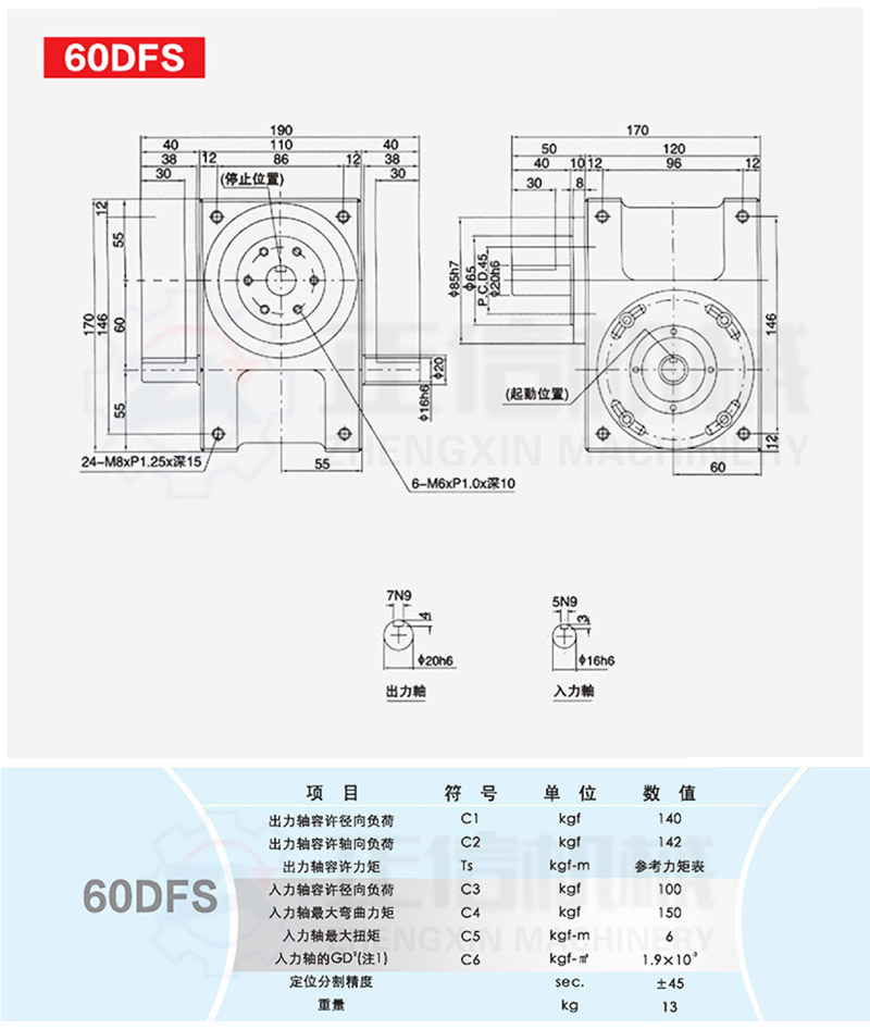 7、旋轉速度: 施加的扭矩大于這個數(shù)值,則會損壞分割器。